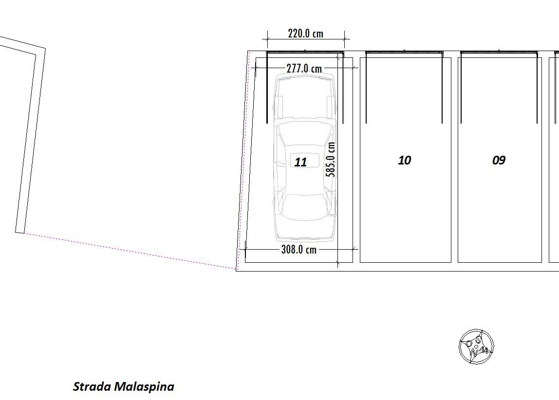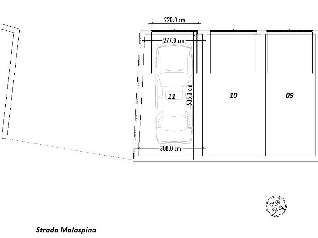 Vendesi Box singolo di mq. 16 ca. in Strada Malaspina 6. Lunghezza mt. 5,90 ca. - Larghezza minima mt. 2,77 ca. - Altezza mt. 2,77 ca. Porta basculante larga mt. 2,20 ca. - alta mt 2,00 ca.