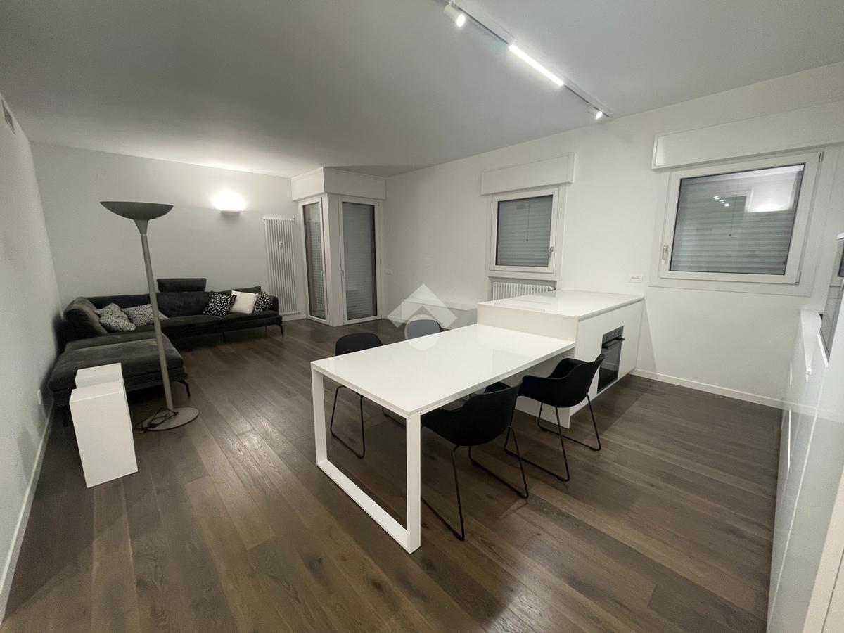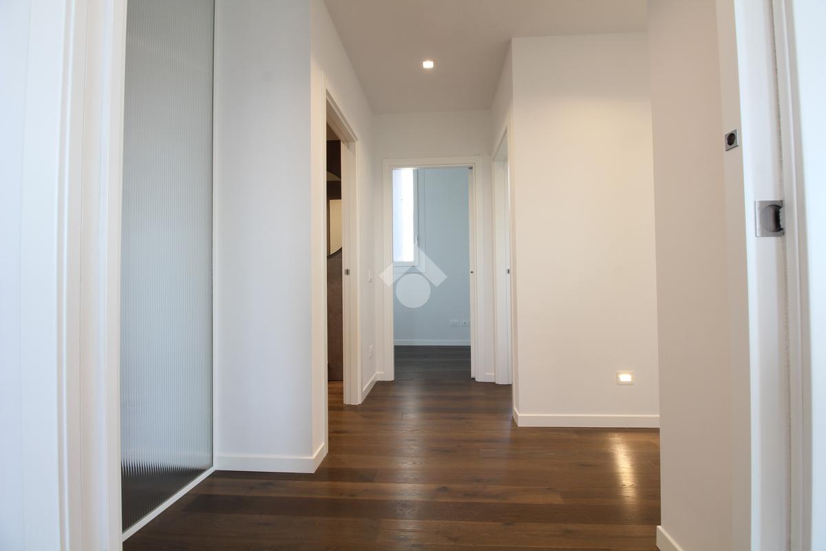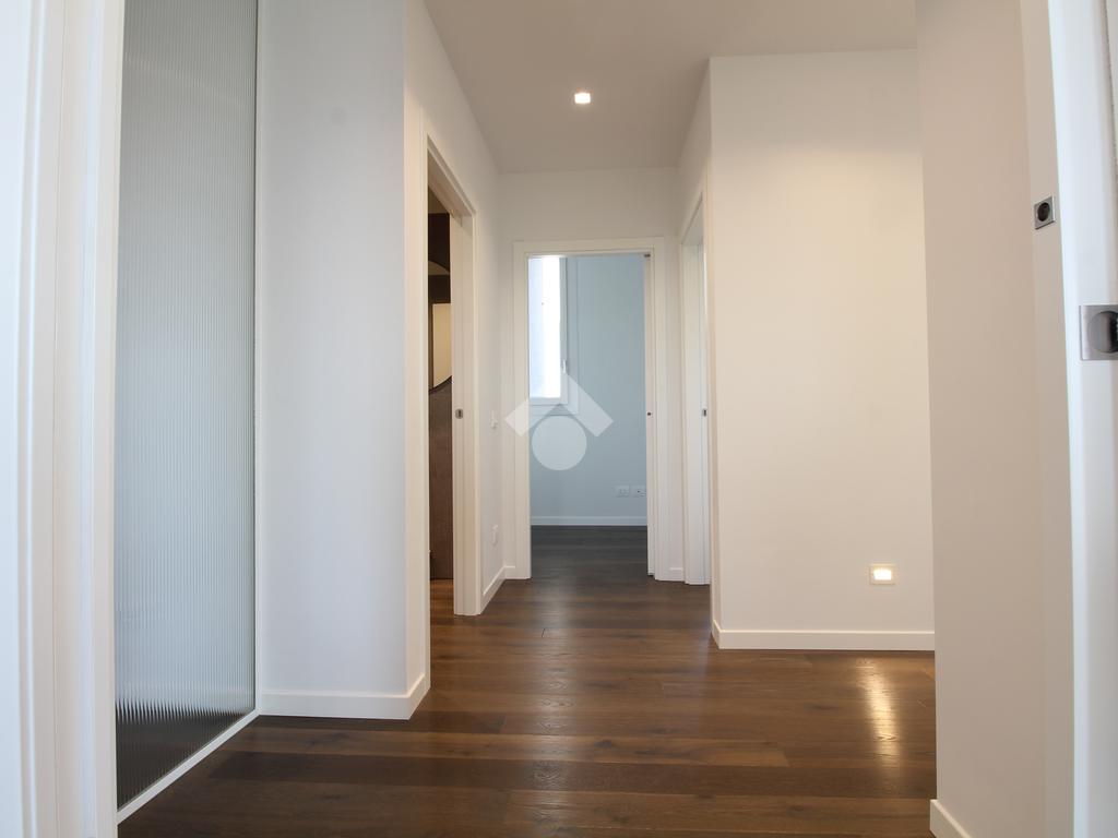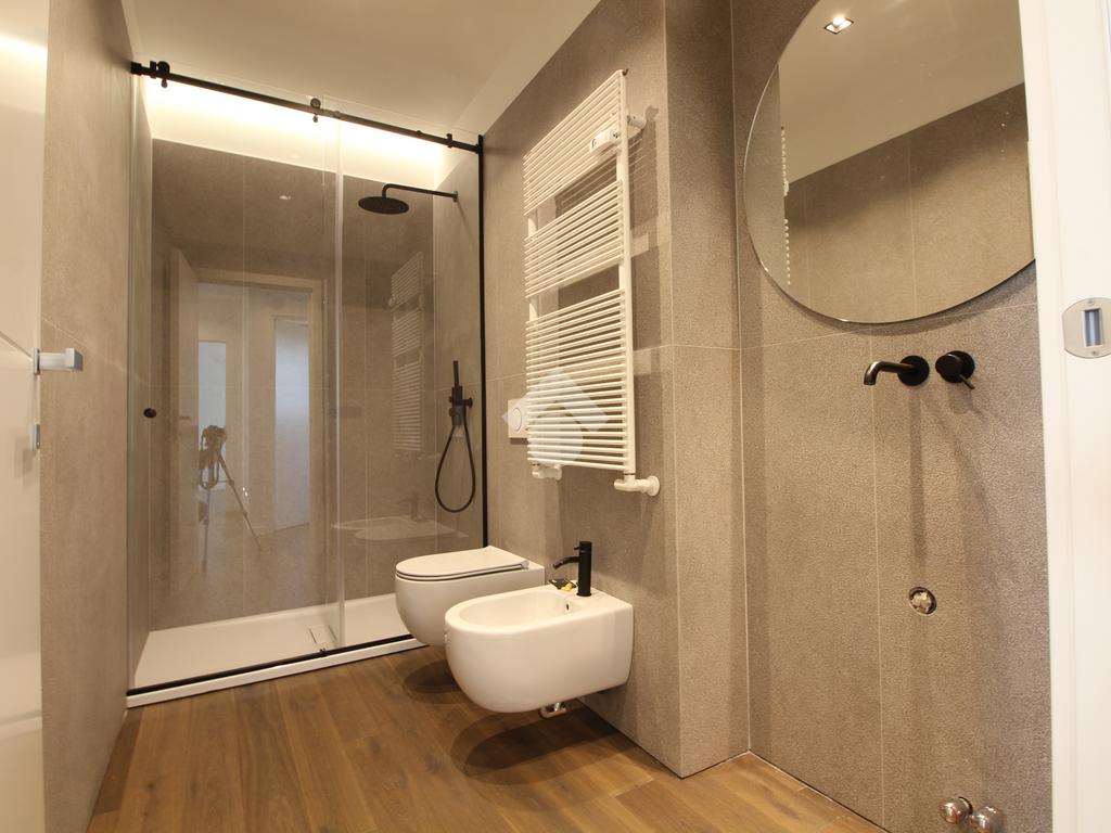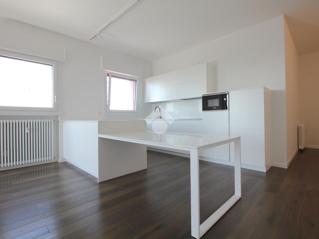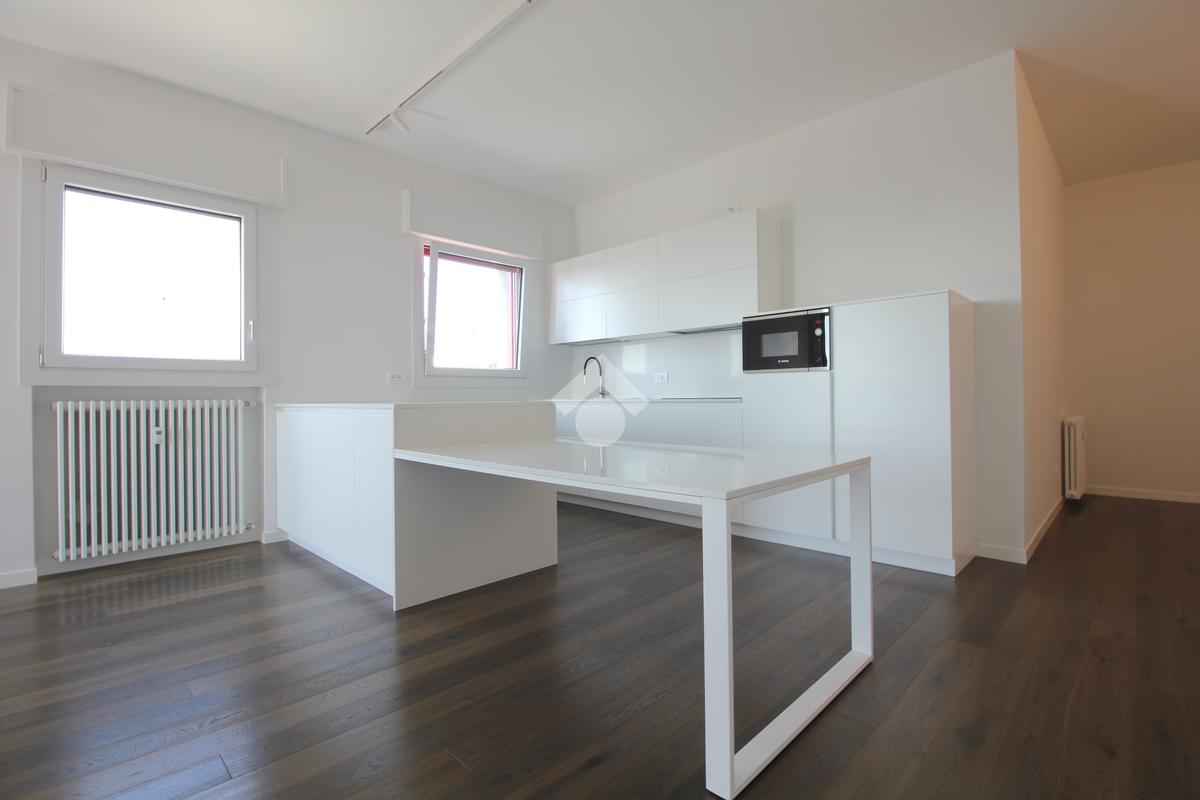 Luminoso appartamento situato all'ottavo piano, composto da ingresso, ampio soggiorno con cucina a vista arredata, terrazzo, lavanderia, due camere da letto, bagno finestrato con vasca, secondo bagno con doccia e ripostiglio. Completamente ristrutturato con pavimenti in parquet, aria condizionata canalizzata, infissi in Pvc con tripli vetri, tapparelle motorizzate e zanzariere. Parzialmente arredato.