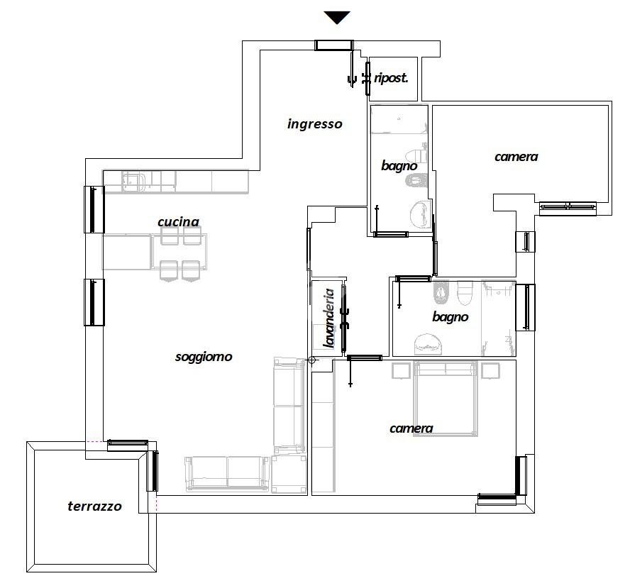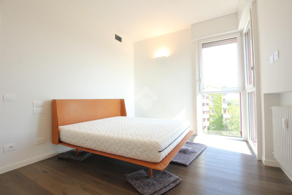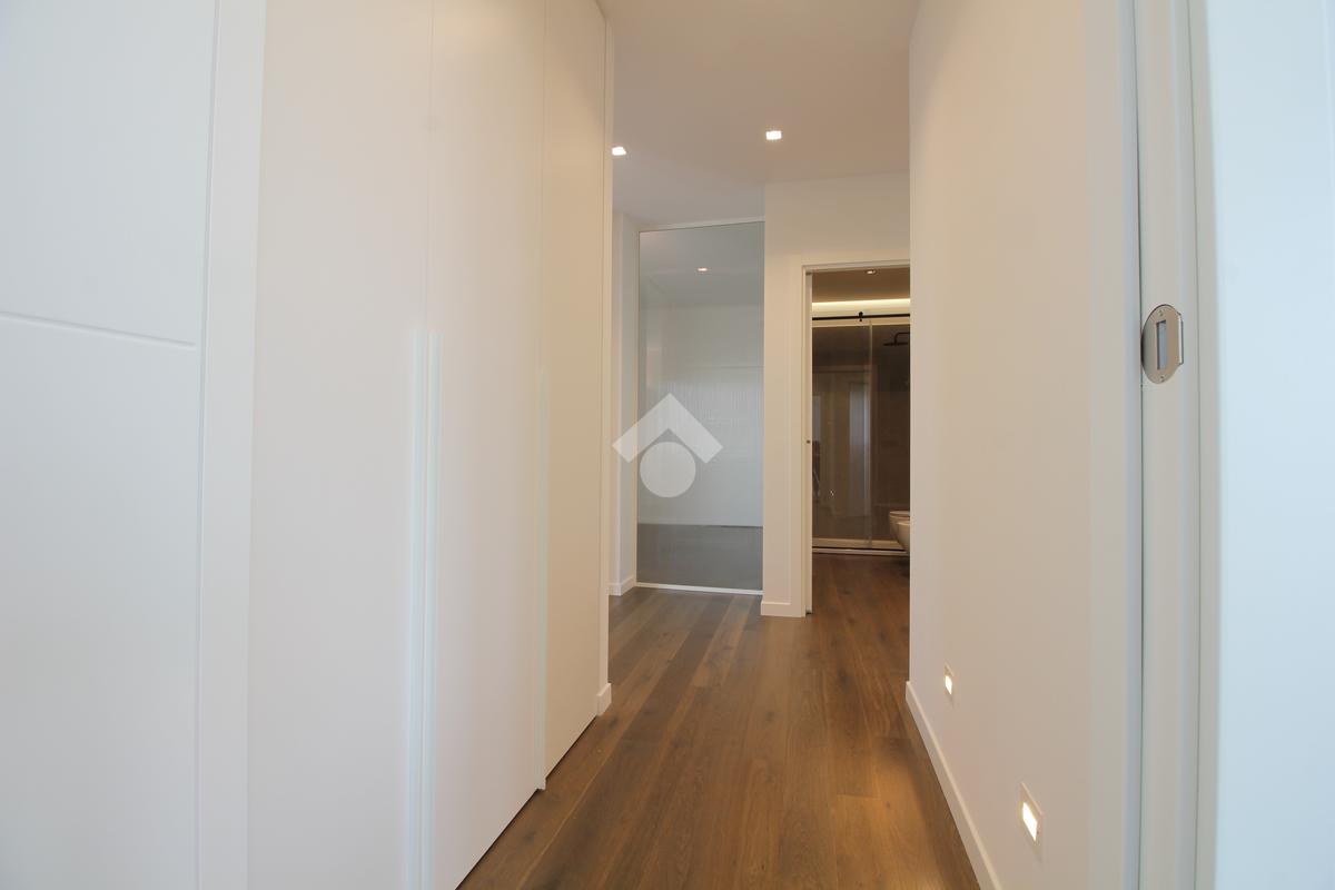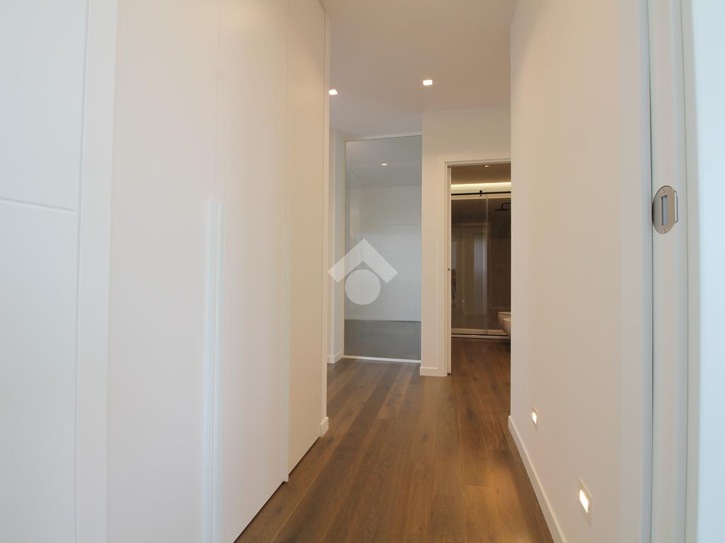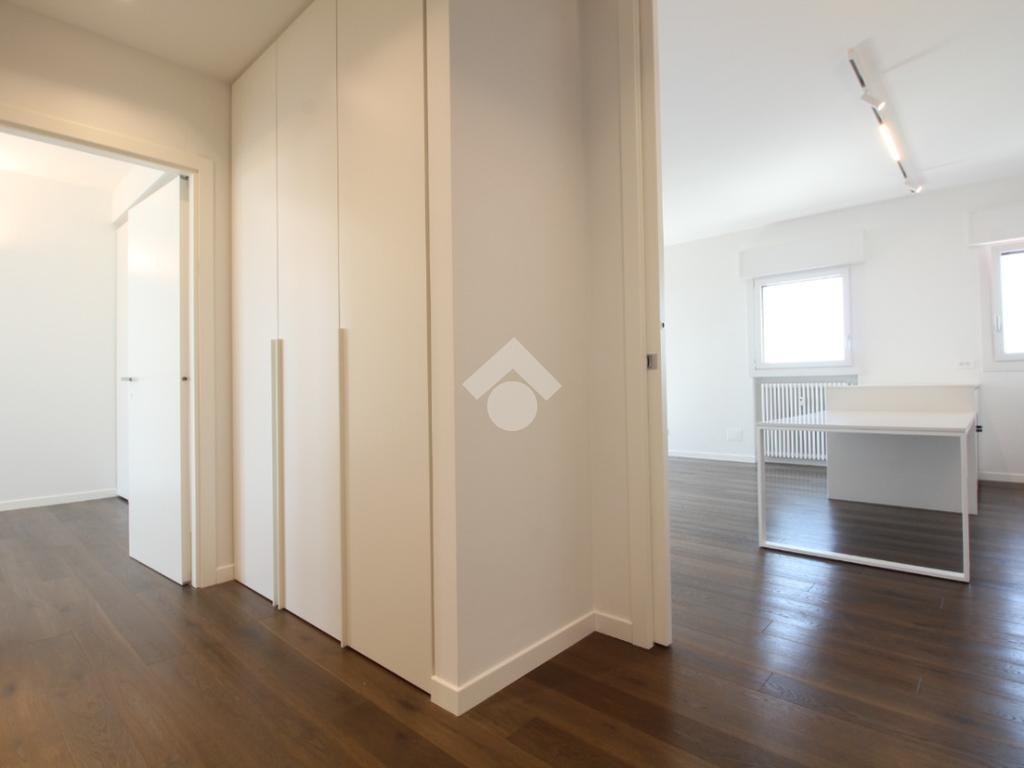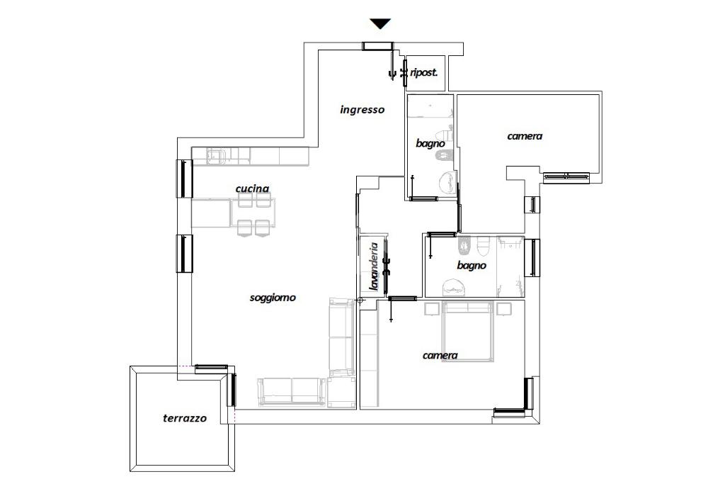 Luminoso appartamento situato all'ottavo piano, composto da ingresso, ampio soggiorno con cucina a vista arredata, terrazzo, lavanderia, due camere da letto, bagno finestrato con vasca, secondo bagno con doccia e ripostiglio. Completamente ristrutturato con pavimenti in parquet, aria condizionata canalizzata, infissi in Pvc con tripli vetri, tapparelle motorizzate e zanzariere. Parzialmente arredato.