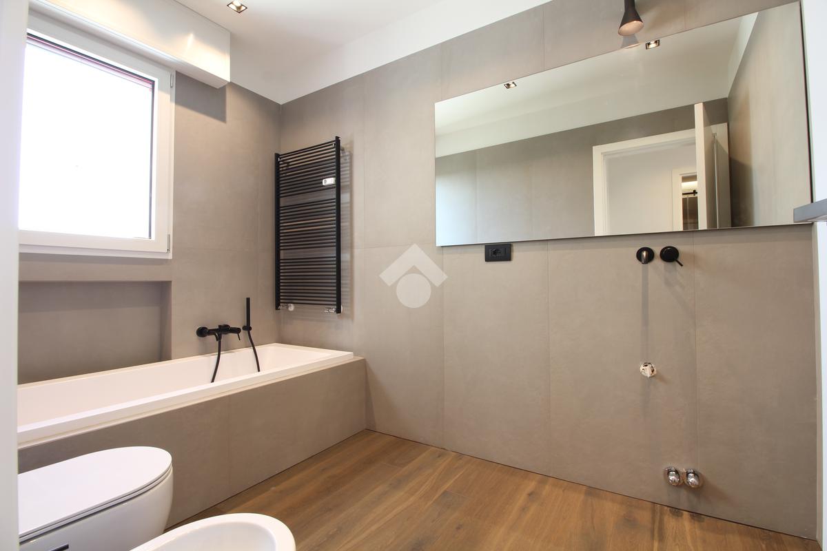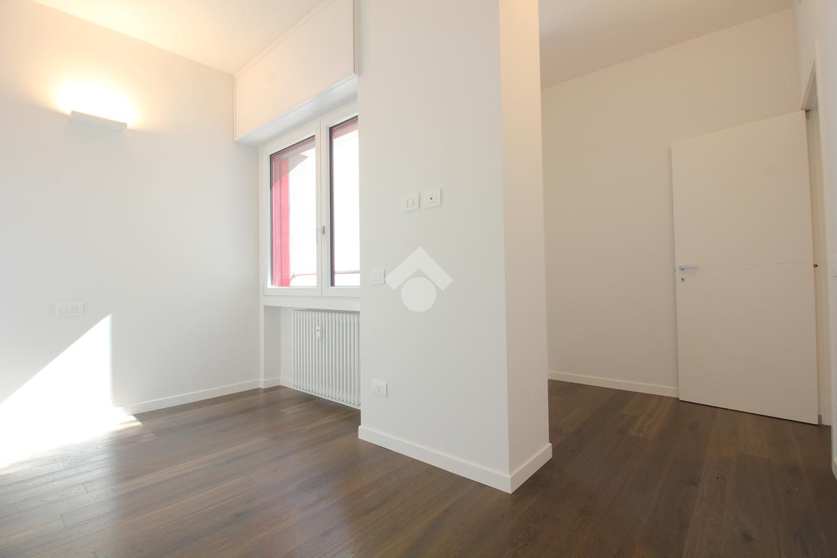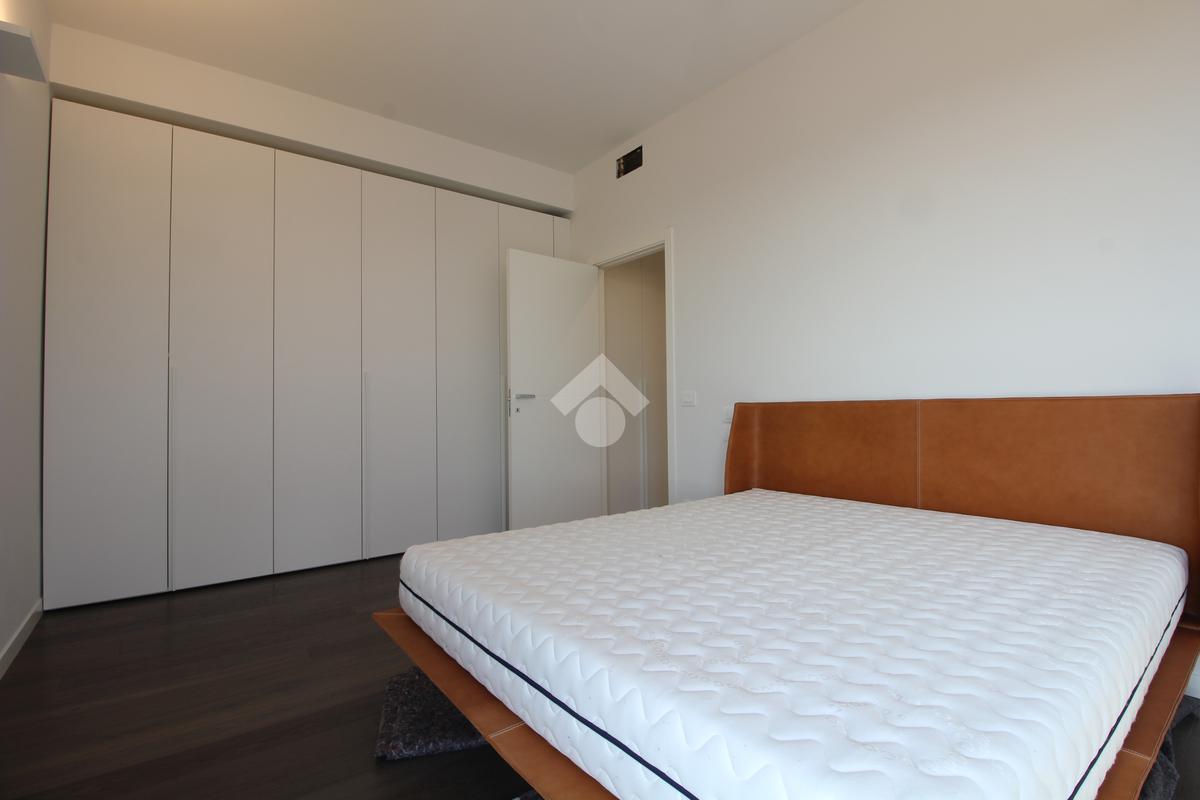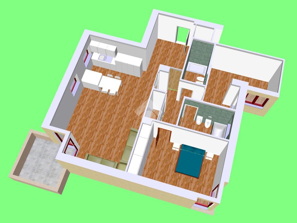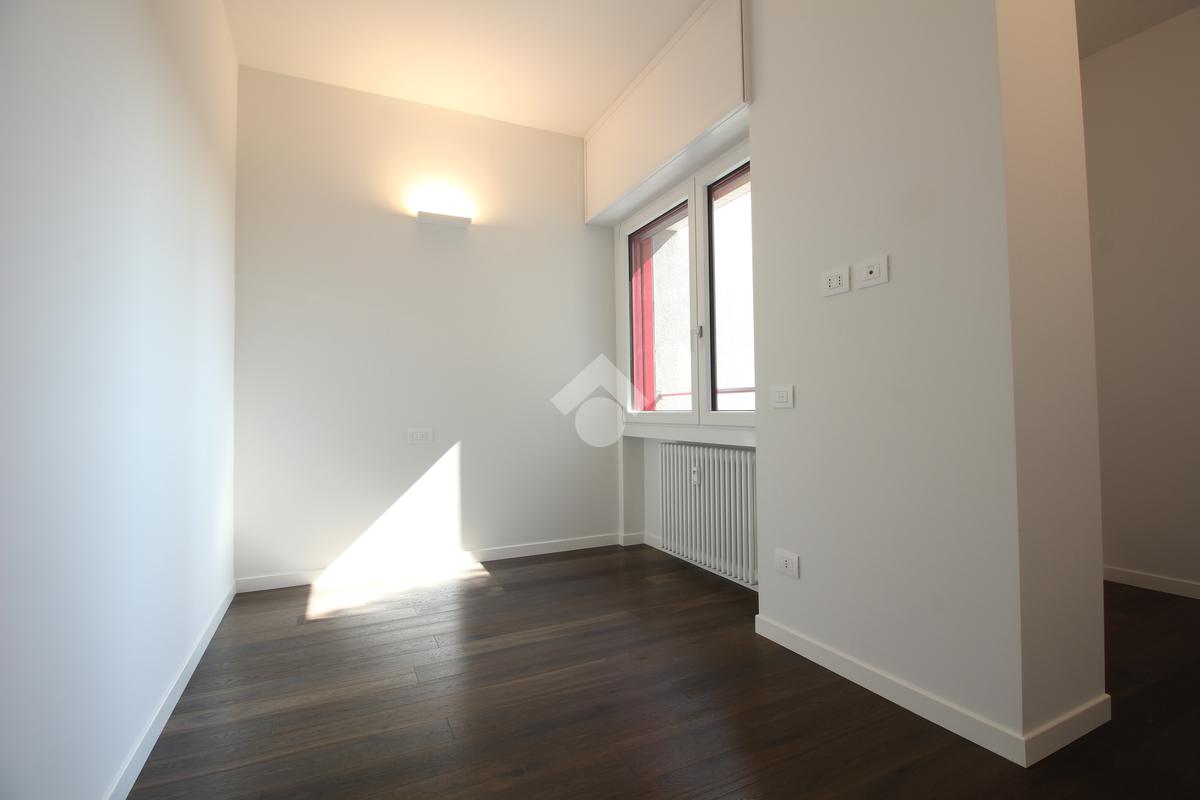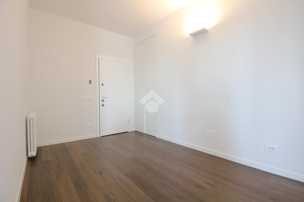 Luminoso appartamento situato all'ottavo piano, composto da ingresso, ampio soggiorno con cucina a vista arredata, terrazzo, lavanderia, due camere da letto, bagno finestrato con vasca, secondo bagno con doccia e ripostiglio. Completamente ristrutturato con pavimenti in parquet, aria condizionata canalizzata, infissi in Pvc con tripli vetri, tapparelle motorizzate e zanzariere. Parzialmente arredato.