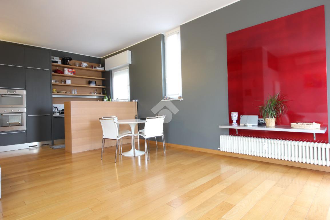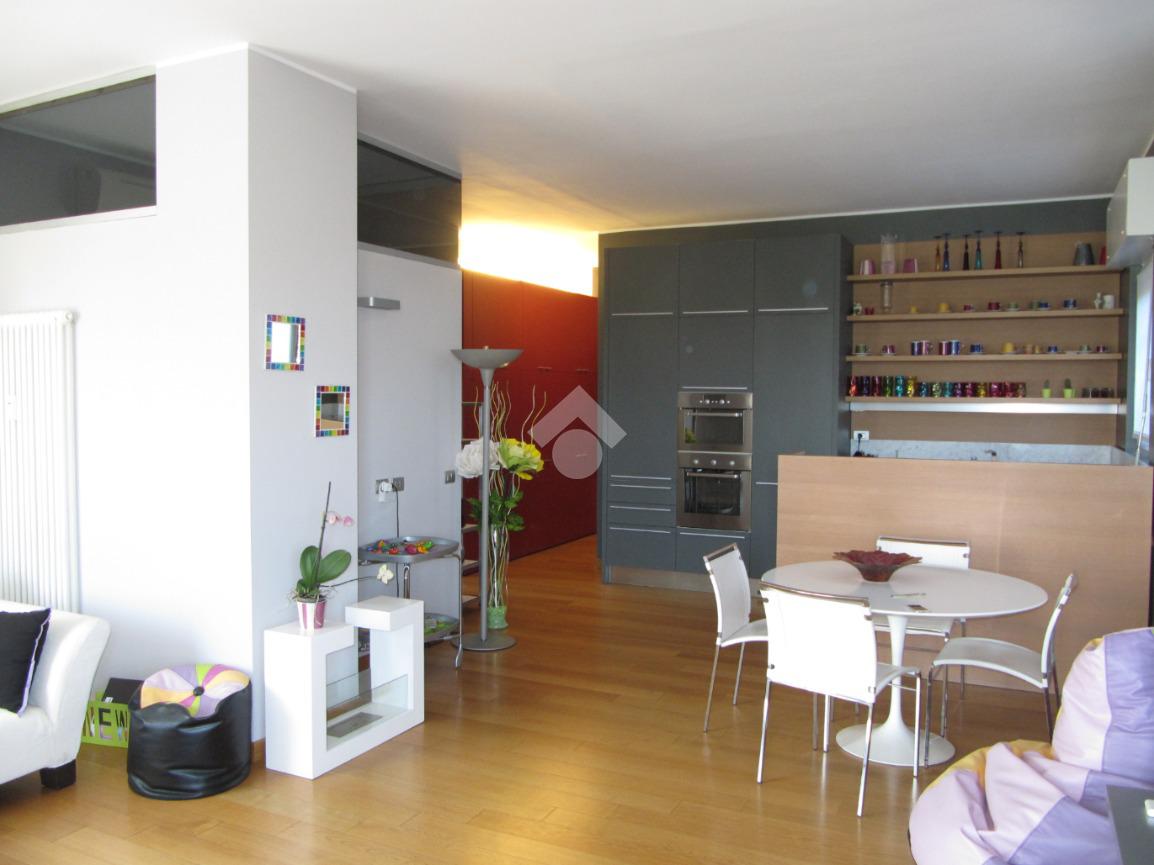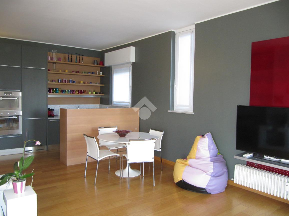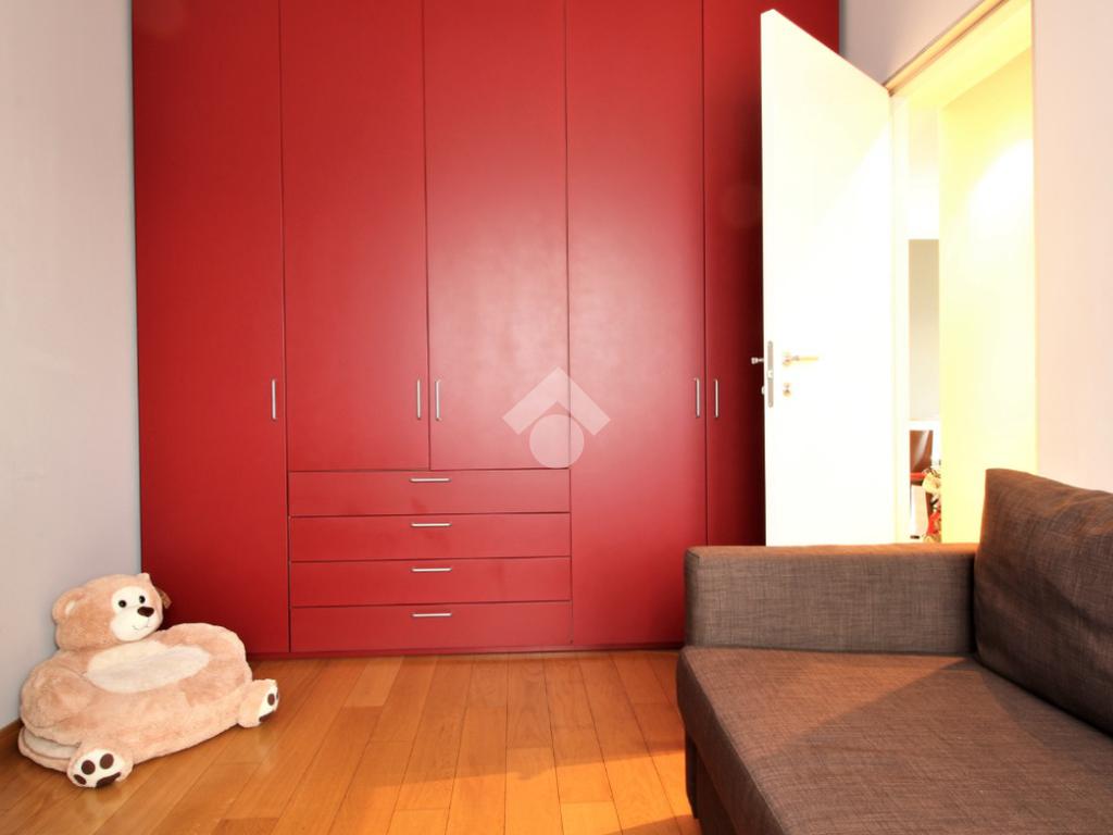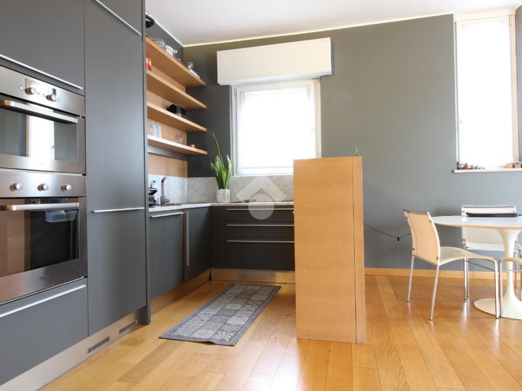 Luminoso trilocale di mq. 112 sito al quinto piano, composto da igresso, soggiorno doppio con sala da pranzo e cucina a vista, balcone di ca. 7 due camere matrimoniali e doppi servizi. Completa la proprietà la cantina. Pavimenti in parquet, infissi in pvc con doppi vetri, zanzariere e aria condizionata.
