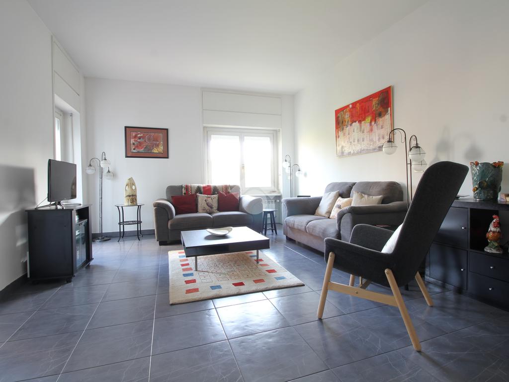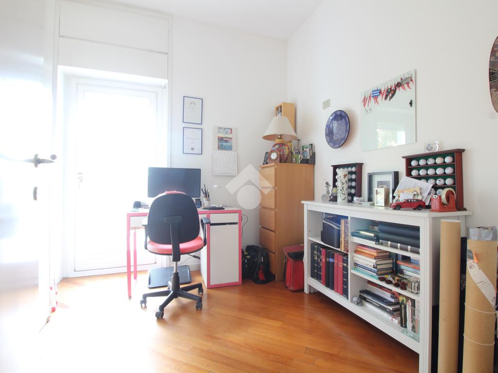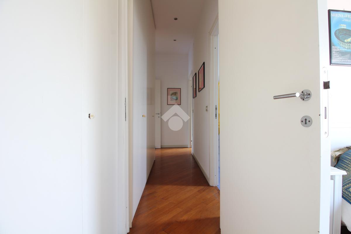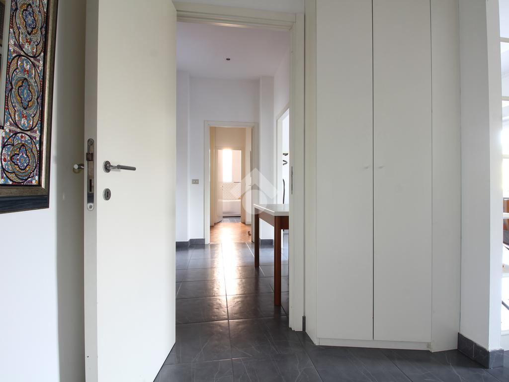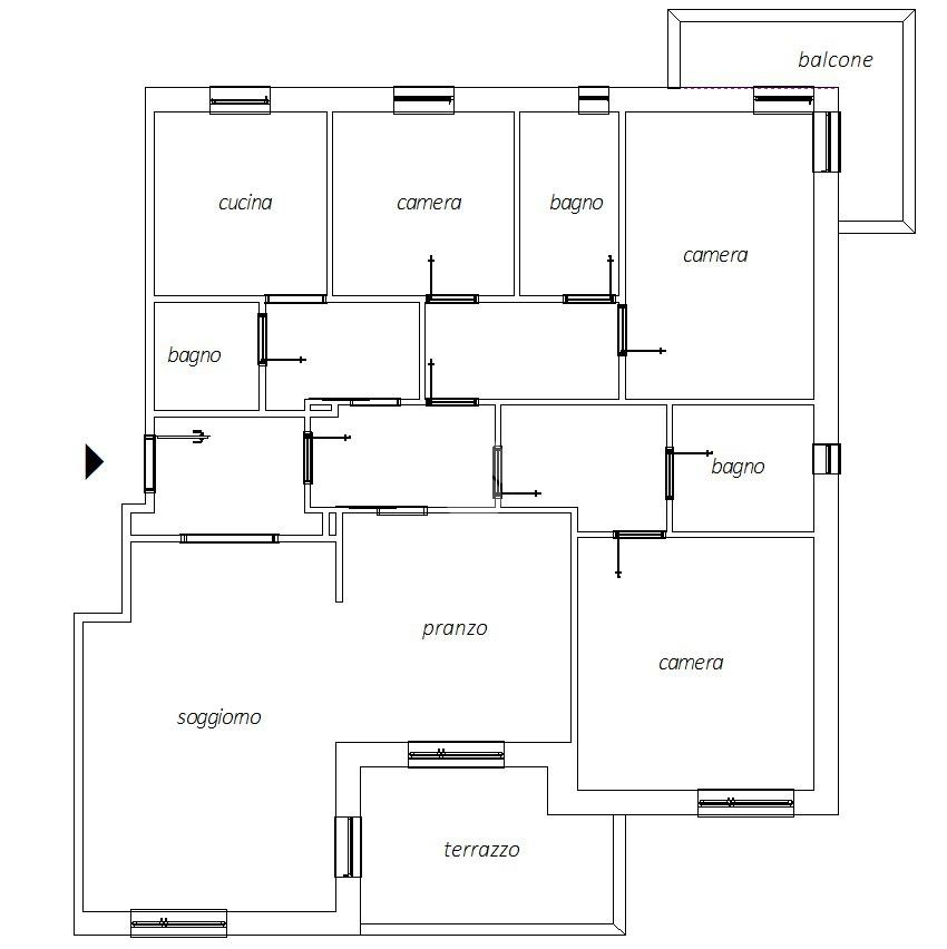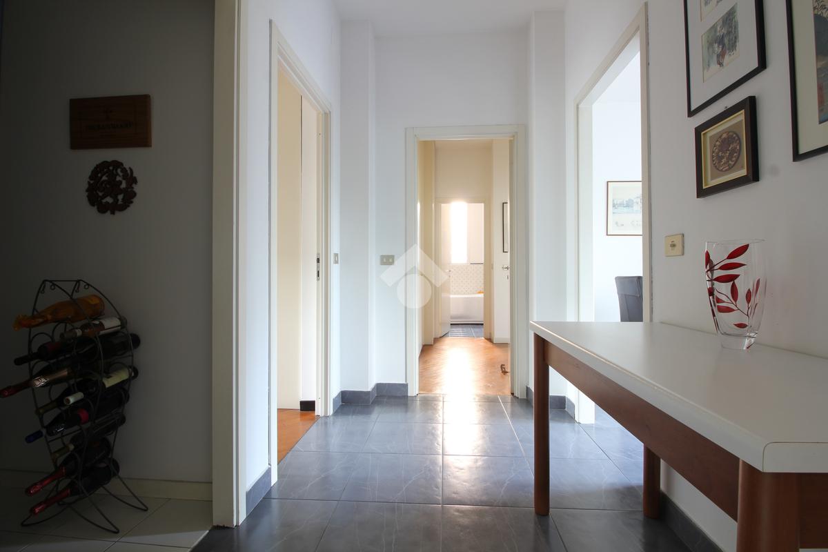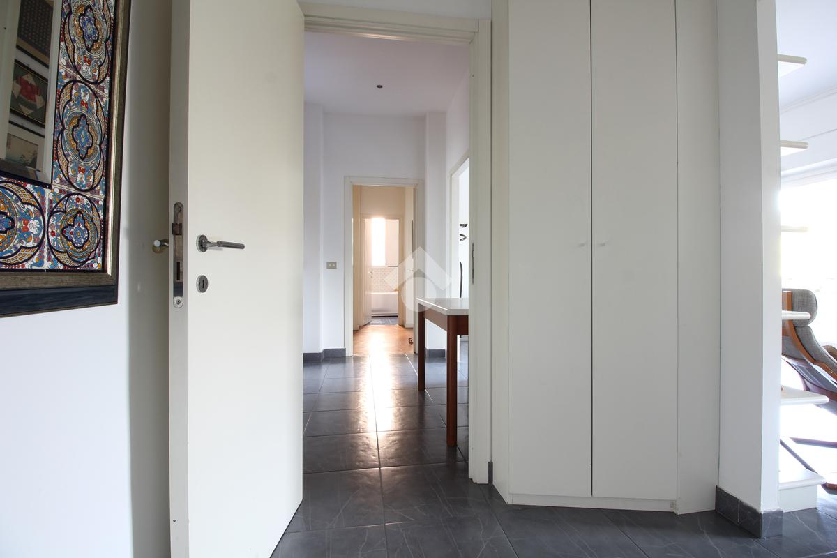 Appartamento di 4 locali composto da ingresso, soggiorno doppio con sala da pranzo e accesso al terrazzo, disimpegno con lavanderia, cucina abitabile e bagno di servizio, camera matrimoniale con balcone, camera matrimoniale con bagno finestrato, camera/studio e secondo bagno finestrato. Completa la proprietà una cantina.