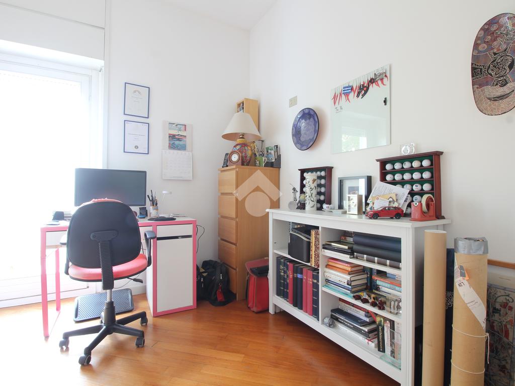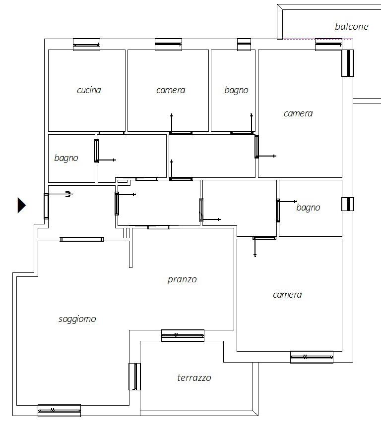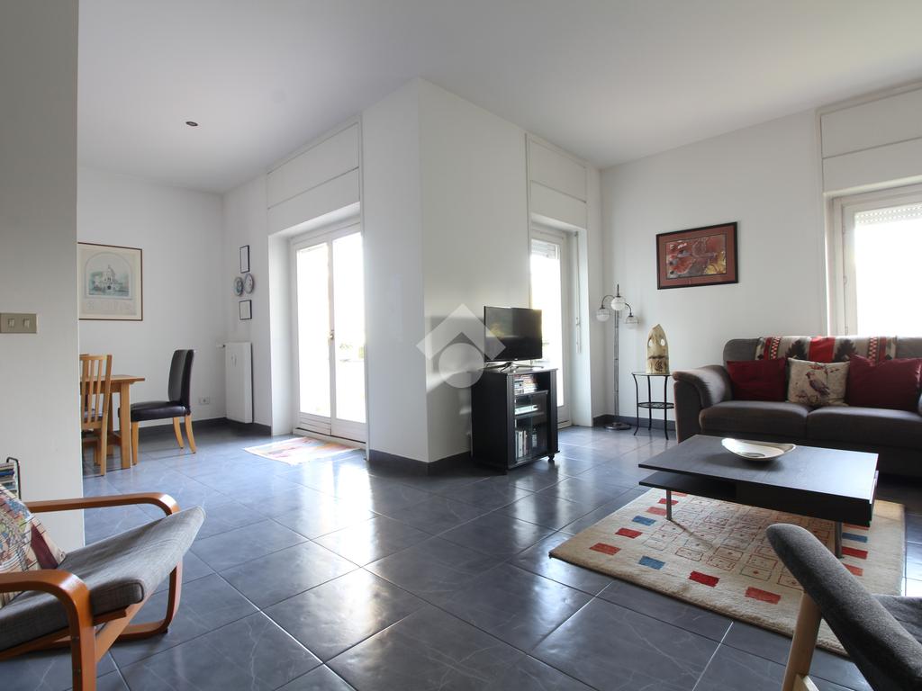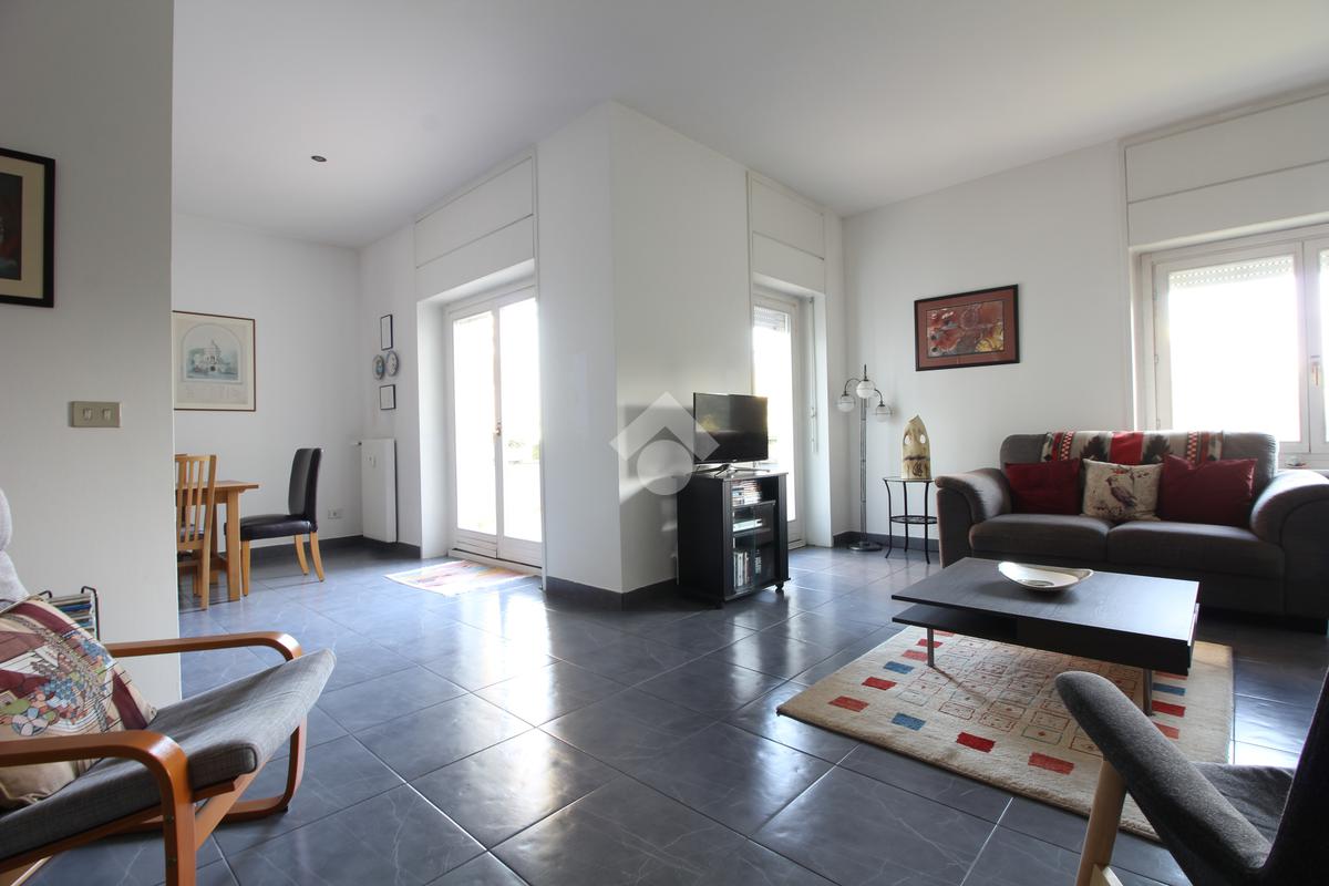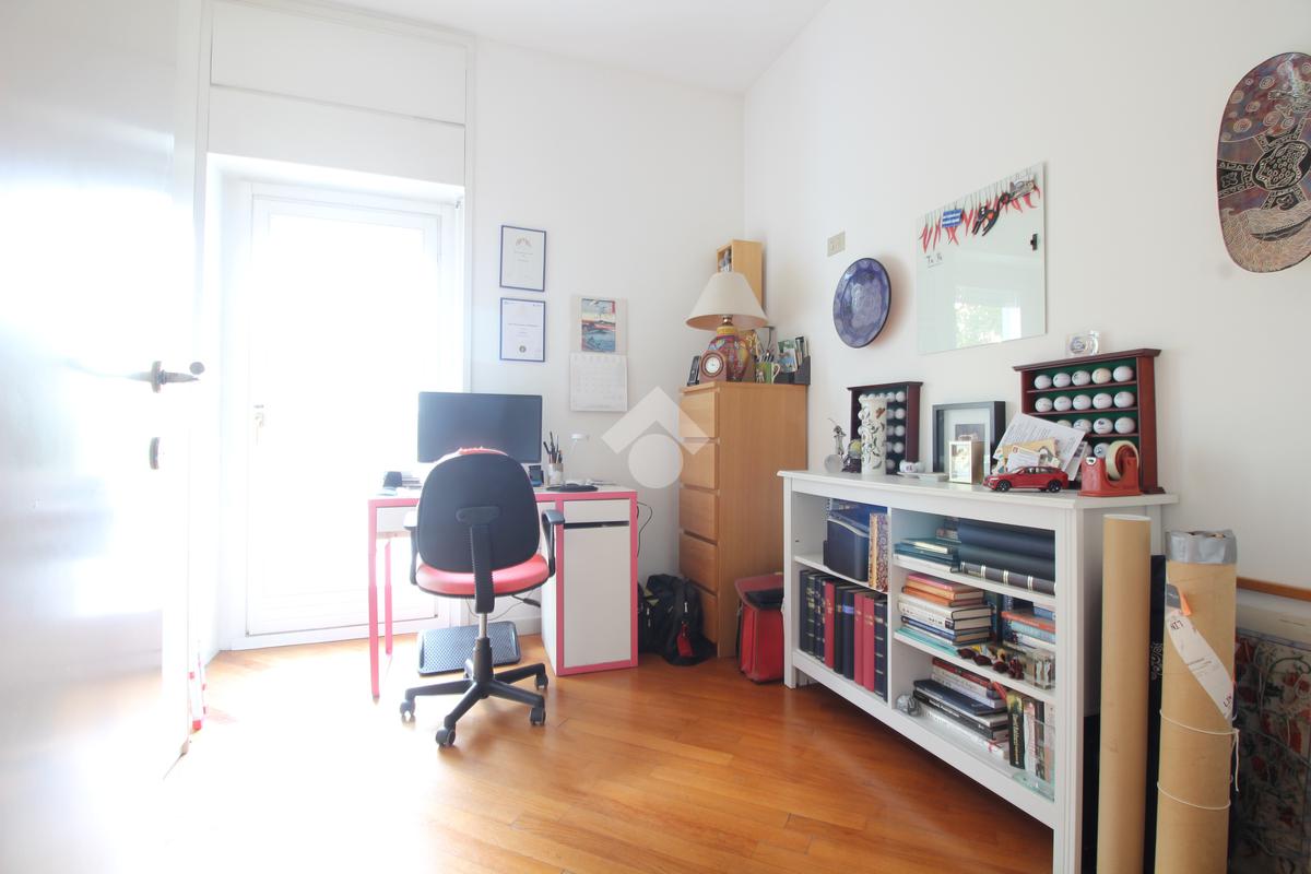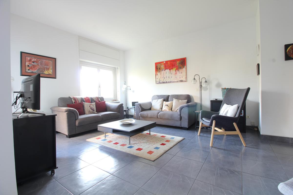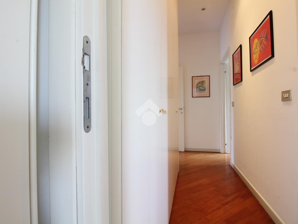 Appartamento di 4 locali composto da ingresso, soggiorno doppio con sala da pranzo e accesso al terrazzo, disimpegno con lavanderia, cucina abitabile e bagno di servizio, camera matrimoniale con balcone, camera matrimoniale con bagno finestrato, camera/studio e secondo bagno finestrato. Completa la proprietà una cantina.