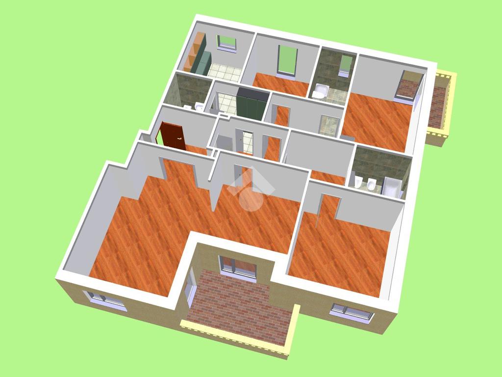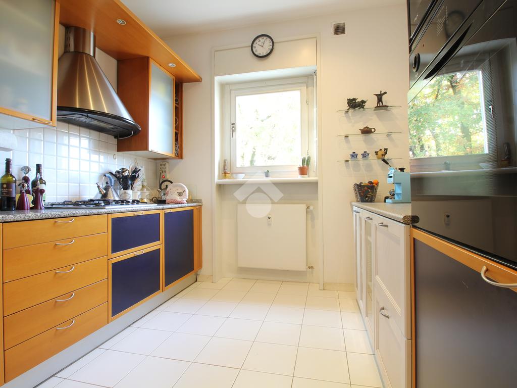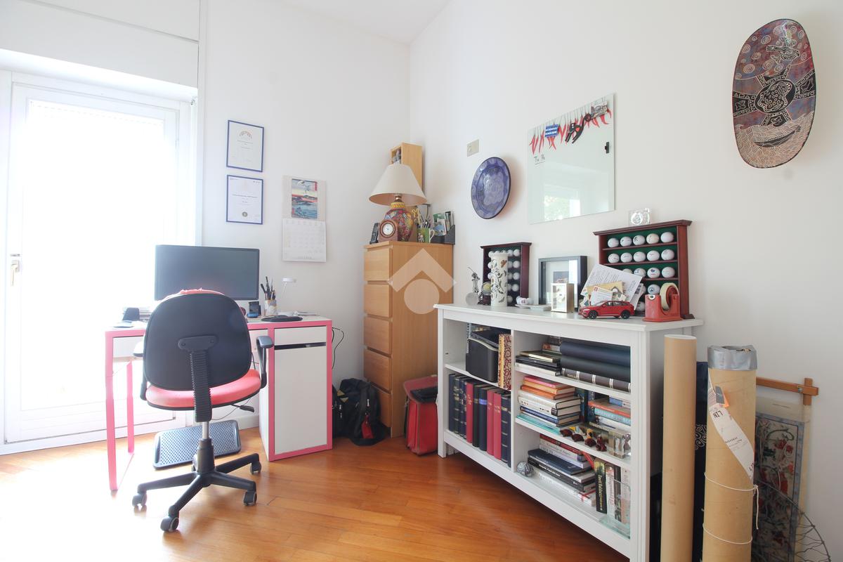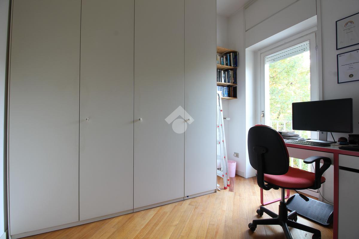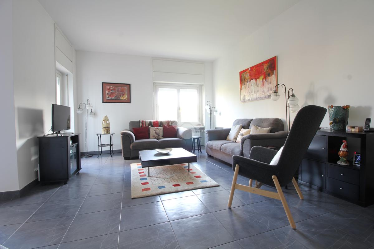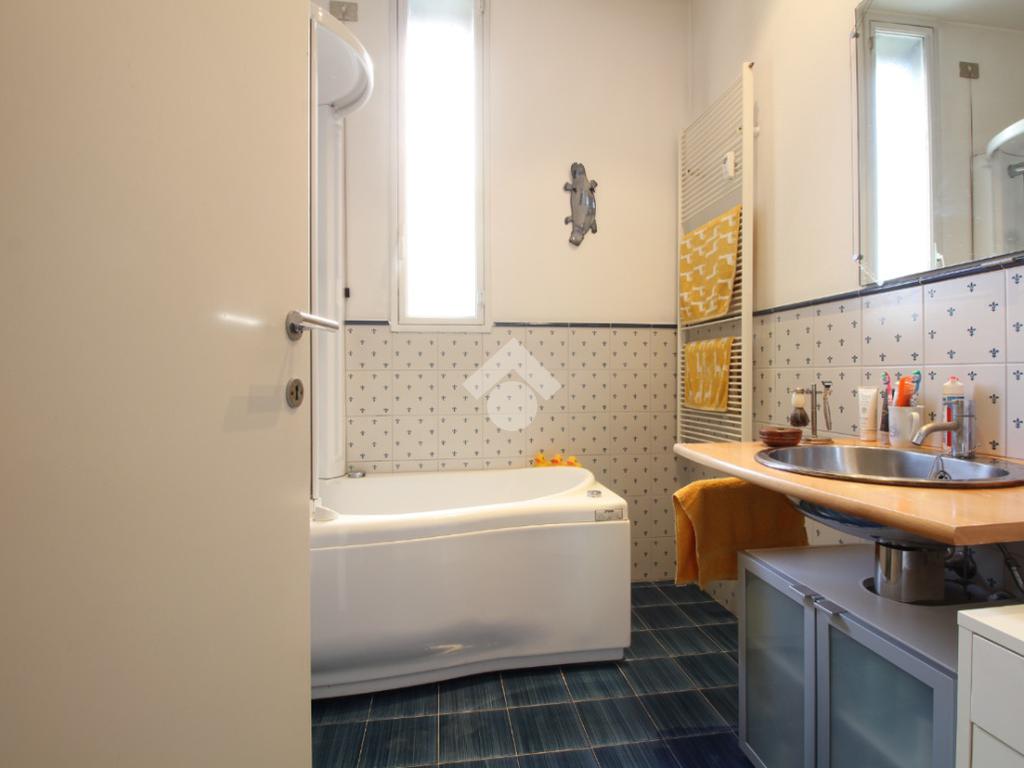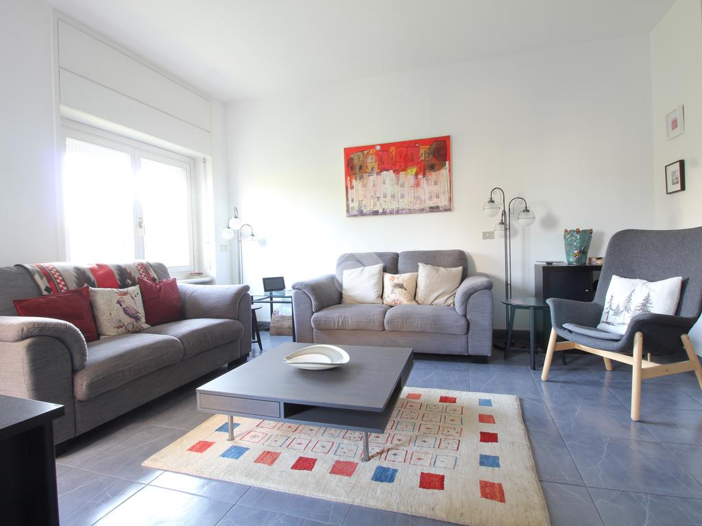 Appartamento di 4 locali composto da ingresso, soggiorno doppio con sala da pranzo e accesso al terrazzo, disimpegno con lavanderia, cucina abitabile e bagno di servizio, camera matrimoniale con balcone, camera matrimoniale con bagno finestrato, camera/studio e secondo bagno finestrato. Completa la proprietà una cantina.