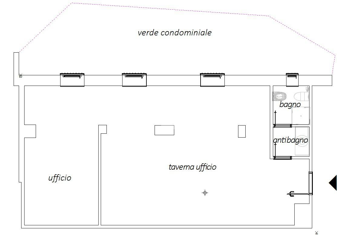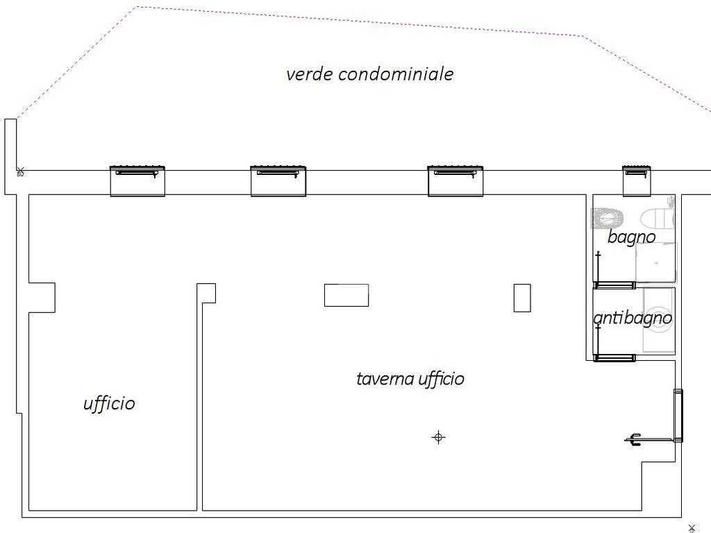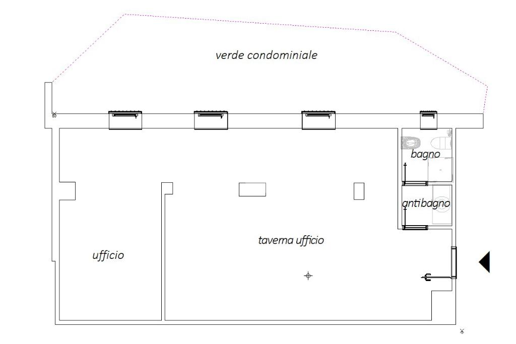Splendida taverna di circa 79 mq. completamente ristrutturata, destinazione uso UFFICIO, composta da un open space, un ufficio separato, angolo ristoro, antibagno e bagno.