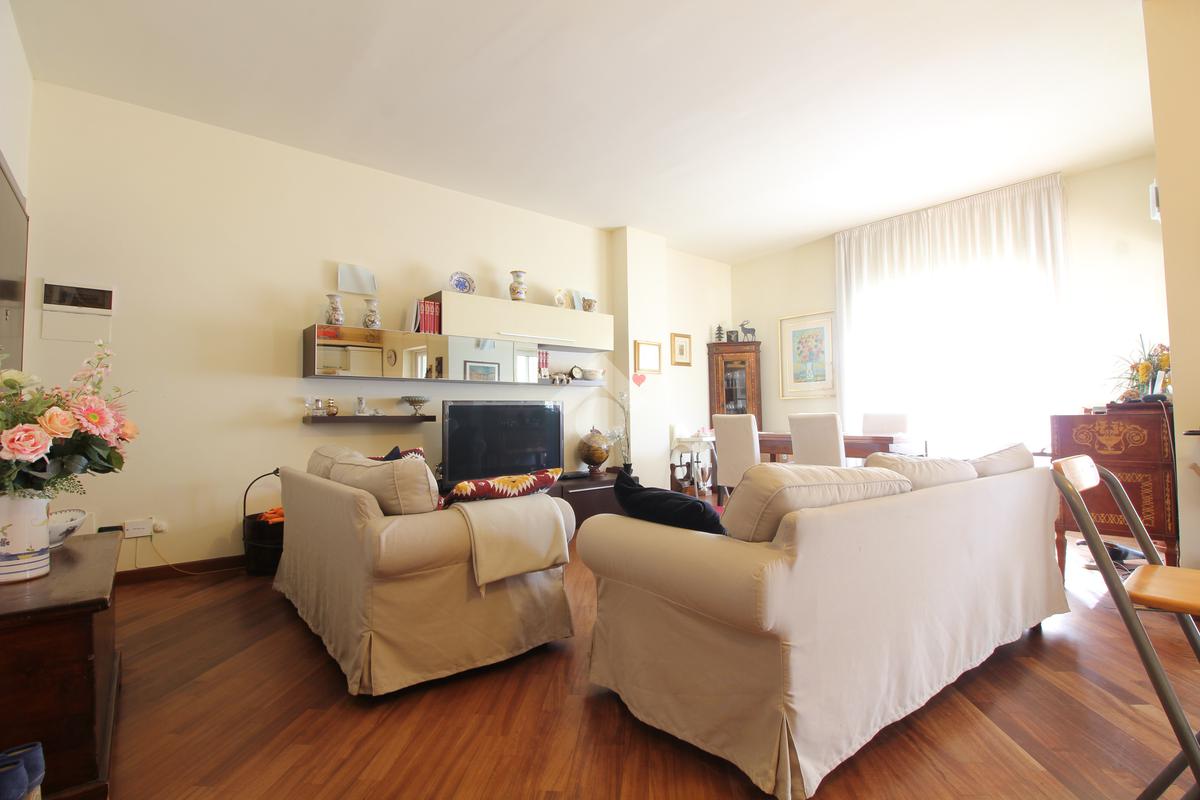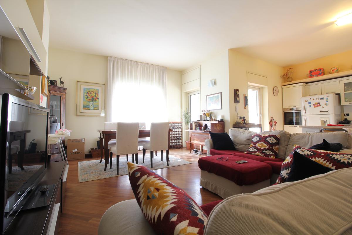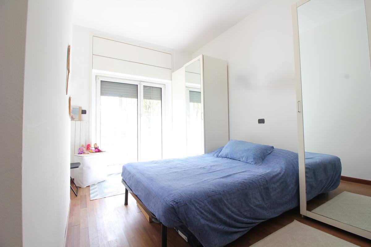 In palazzina di 4 piani, completamente ristrutturata con cappotto, luminoso appartamento sito al primo piano, composto da ingresso, soggiorno con cucina a vista, ampio terrazzo di mq. 18 camera matriomoniale con annessa cabina armadio (ex bagno), seconda camera con uscita sul terrazzo, bagno finestrato con doccia e ripostiglio. Ristrutturato con pavimenti in parquet, infissi alluminio con doppi vetri, zanzariere, tapparelle motorizzate, grate e aria condizionata. Completa la proprietà il solaio.