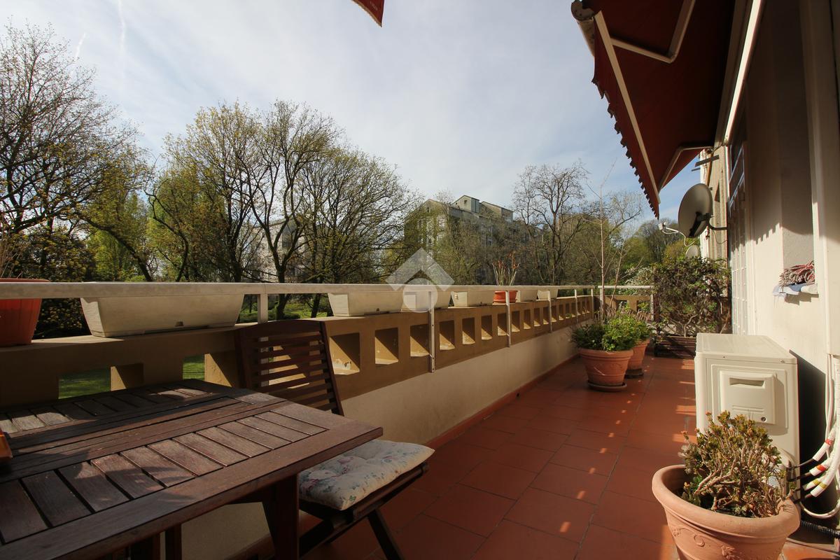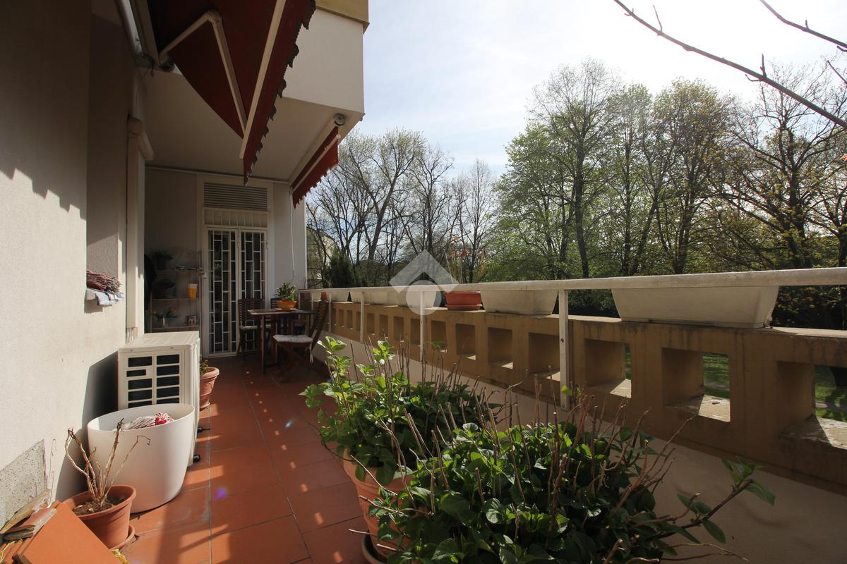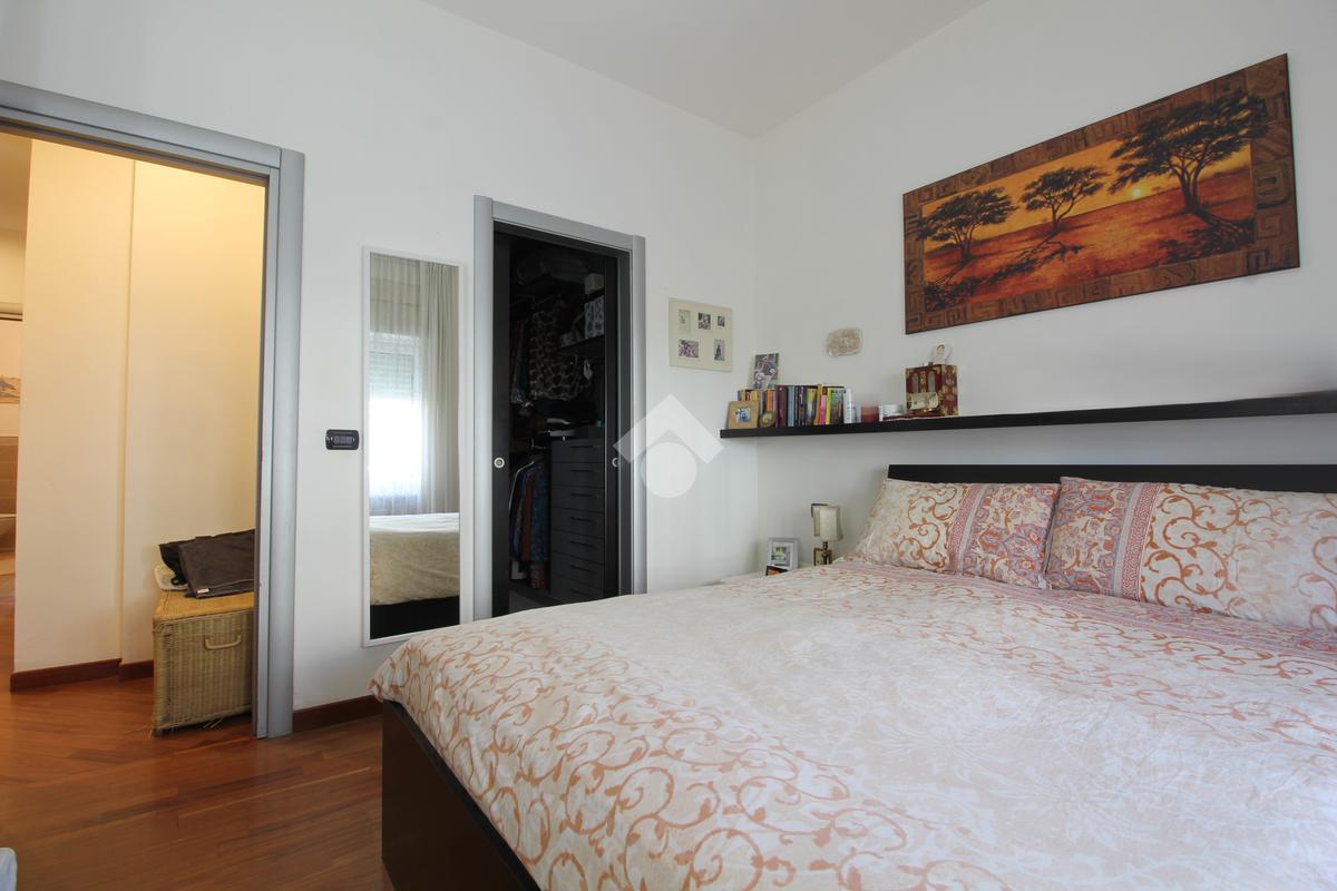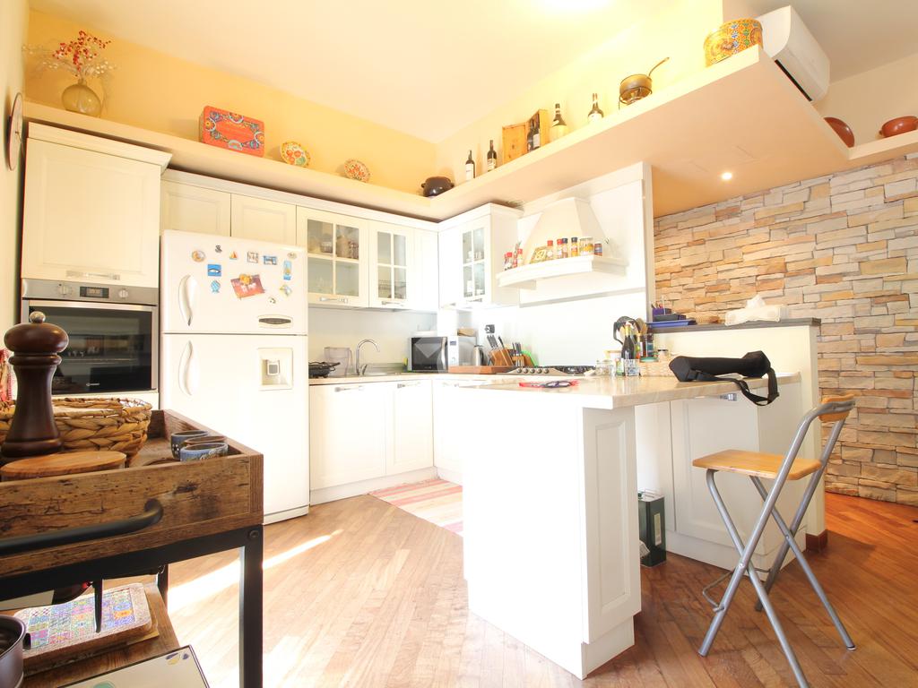 In palazzina di 4 piani, completamente ristrutturata con cappotto, luminoso appartamento sito al primo piano, composto da ingresso, soggiorno con cucina a vista, ampio terrazzo di mq. 18 camera matriomoniale con annessa cabina armadio (ex bagno), seconda camera con uscita sul terrazzo, bagno finestrato con doccia e ripostiglio. Ristrutturato con pavimenti in parquet, infissi alluminio con doppi vetri, zanzariere, tapparelle motorizzate, grate e aria condizionata. Completa la proprietà il solaio.